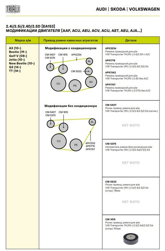 Артикул.1: CM 1815 Ширина, мм: 26 Количество на автомобиль: 1 Товарная линейка: BLACK Гарантийный срок: 2 года/60 000 км. Сопутствующие товары: CM 5407, CM 5375, CM 5532, 6PK2236, 6PK1715, 6PK1362, 6PK1767 Внутренний диаметр, мм: 8 Внешний диаметр, мм: 90.5 Сопутствующий товар: Ролики приводного ремня: CM 5407, CM 5375, CM 5532 Сопутствующий товар: Ремни: 6PK2236, 6PK1715, 6PK1362, 6PK1767