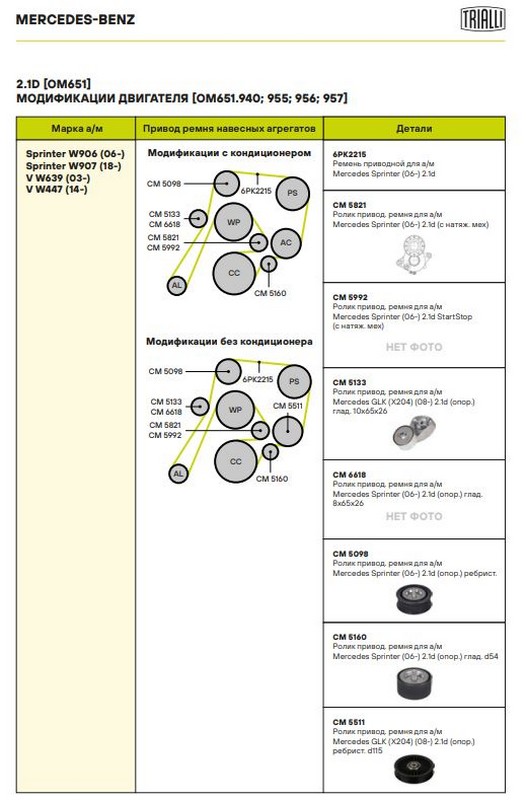 Ролик привод. ремня для а/м Mercedes Sprinter (06-) 2.1d [OM651] (опор.) ребрист. (CM 5098)