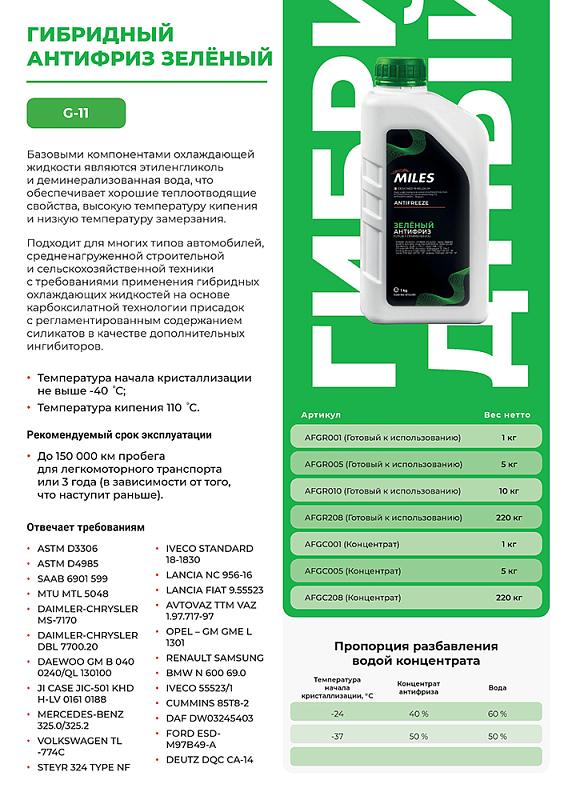 Антифриз G11 MILES готовый 5кг (зеленый) AFGR005