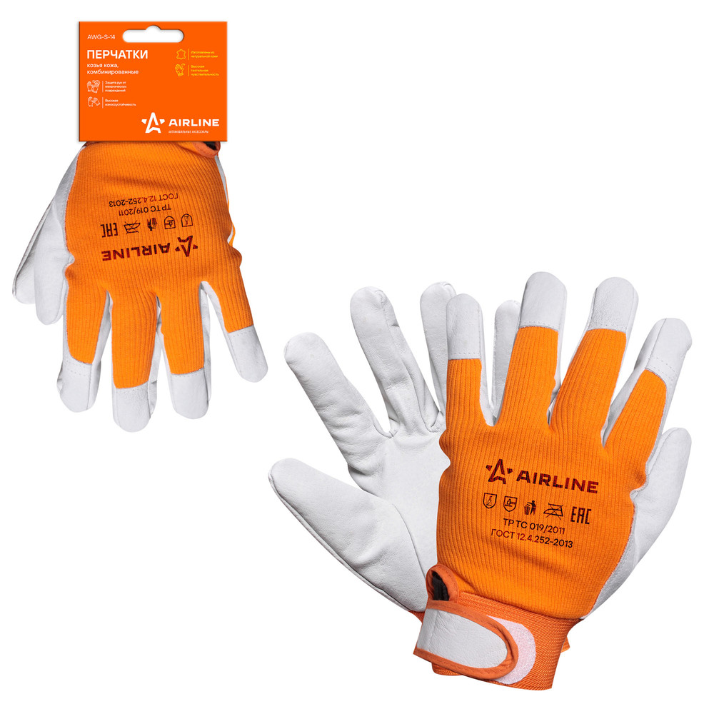 Перчатки козья кожа, комбинированные (натур.кожа/хлопок) (XL), оранж./сер., с подвесом (AWG-S-14)