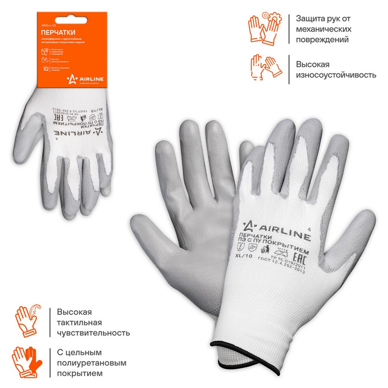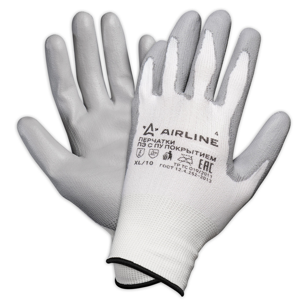 Перчатки полиэфирные с цельным ПУ покрытием ладони (XL), бел./сер., с подвесом (AWG-N-02)