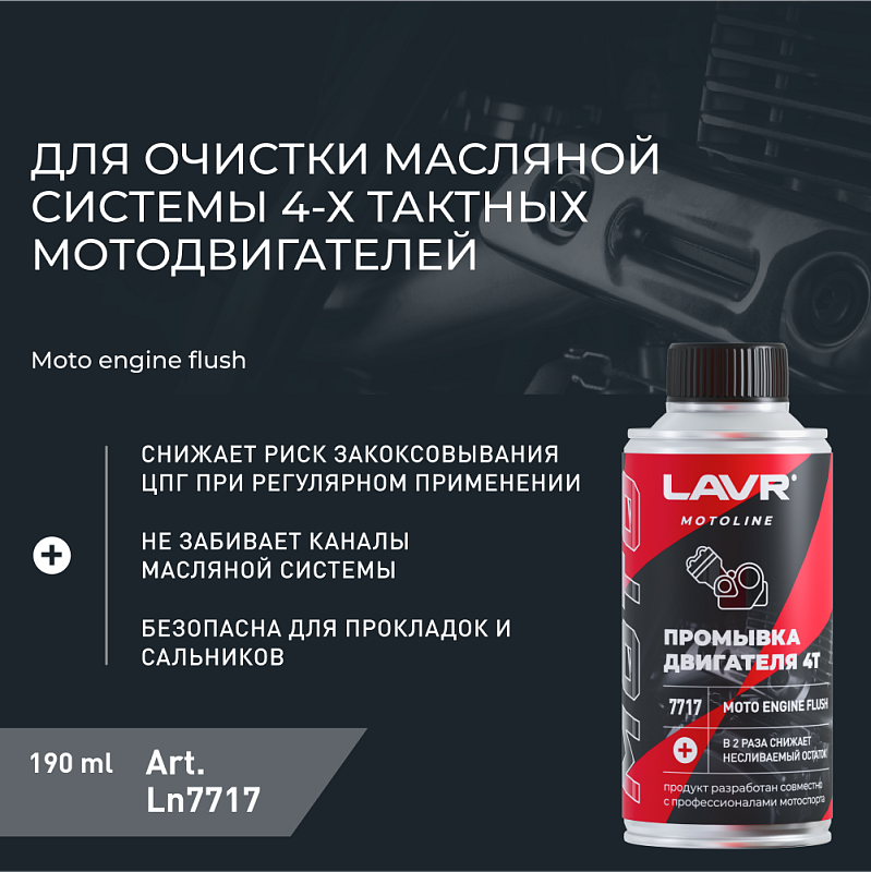 Промывка двигателя LAVR MOTO 190 мл 4Т LN7717