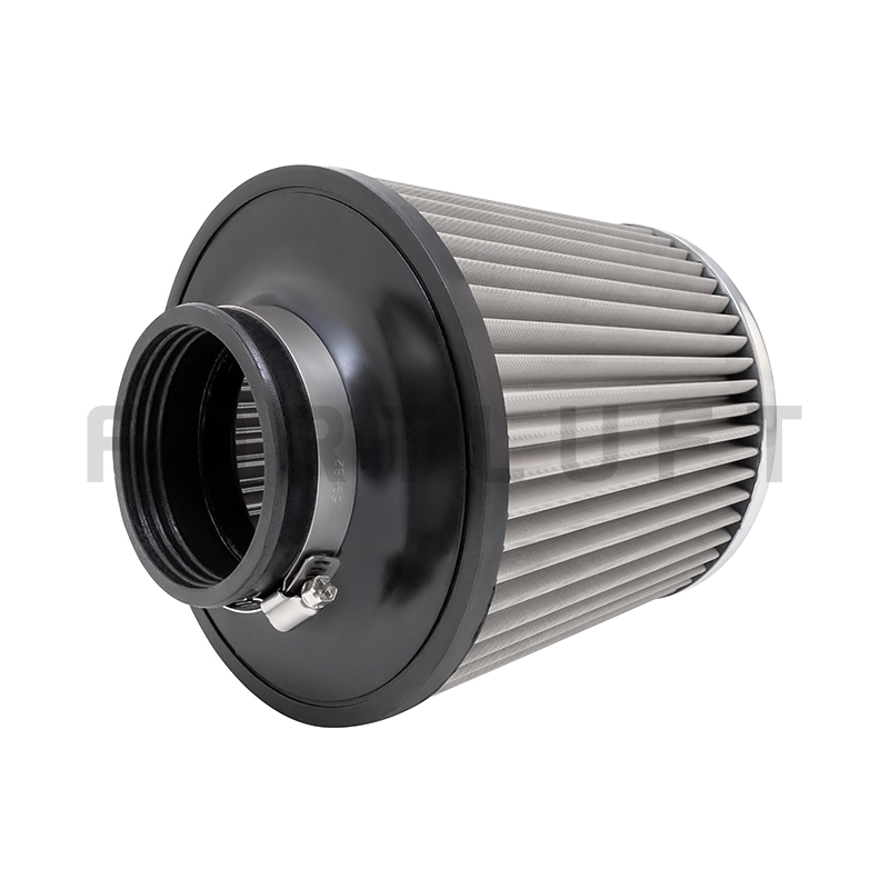 Конструкция конусного воздушного фильтра состоит из литого полиуретанового корпуса и хлопкового фильтрующего элемента, установленного на металлический каркас, который стянут металлической сеткой с внутренней и внешней стороны. Такая конструкция позволяет разрабатывать фильтры для двигателей мощностью до 600 л.с. без риска деформации фильтра и его попадания во впускную систему. Посадочный элемент фильтра выполнен из полиуретанового патрубка с нержавеющим хомутом. Качественный хлопок фильтров FORTLUFT не подвержен разрушению при работе в неблагоприятной среде, фильтр можно мыть водой и повторно использовать. Рекомендуется обслуживать фильтр каждые 10 000-20 000 км.